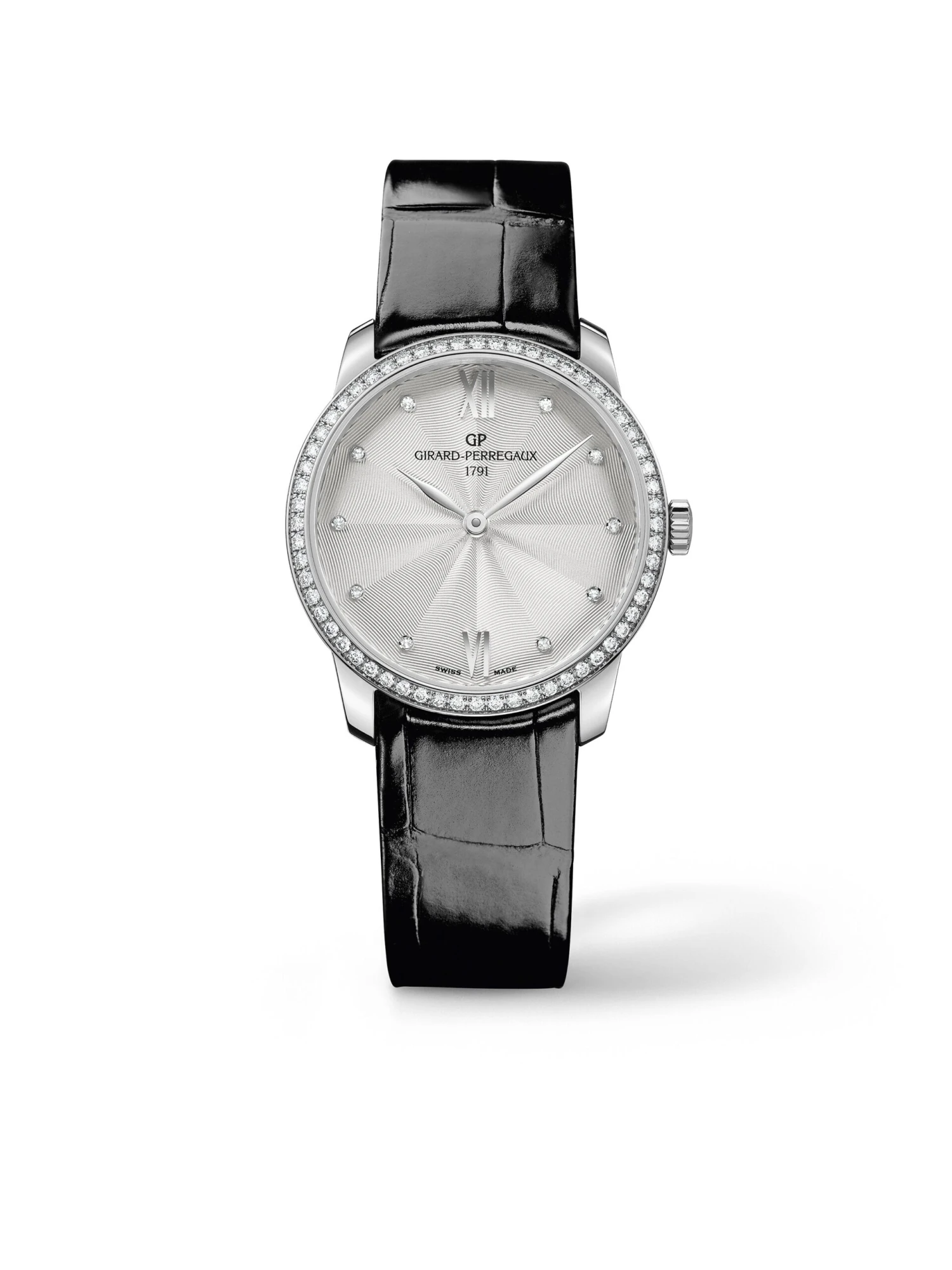 Timeless and puristic elegance as well as mechanics in manufactory quality are the trademarks of the 1966 collection. The 1966 30 MM Ref. 49528D11A172-CB6A interprets the subtle design and harmonious proportions with decidedly luxurious stylistic elements. The dial truly radiates in the interplay of light of an elaborate guilloche and ten diamond hour markers. A diamond bezel provides an expressive setting for the outer appearance. In the slim, 30 millimeter stainless steel case, the automatic manufacture caliber GP03200-0012, decorated with Geneva stripes and perlage, is housed behind a sapphire crystal case back and drives the two hands for hour and minute.