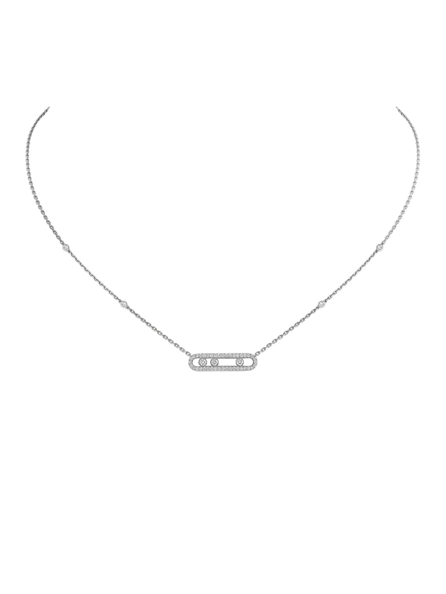 Capture all your special moments and turn each of them into a brilliant statement. The expressive eye-catcher of the Baby Move Pavé necklace from Messika in radiant 18k white gold is the collection’s signature Move cage with three freely moving diamonds that celebrate the love of yesterday, today and tomorrow. The diamond-studded cage comes on a 42-centimeter necklace that is adorned with another four diamonds. A piece of jewelry in a clear, graphic design that you will never want to take of again.