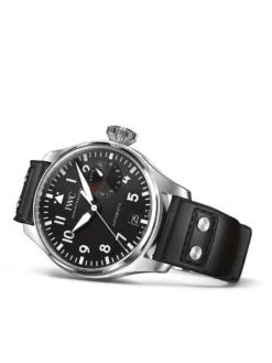 It’s all in the name here: Measuring a proud 46 millimeters in diameter, the Big Pilot’s Watch Ref. IW501001 impresses with a large dial whose luminescent hands and numerals are also readable in the dark. The 15.5 millimeter high stainless steel case is water-resistant to 6 bar. On the inside, it features the caliber 52110, a true powerhouse: The movement, which is protected against magnetic fields, runs for seven days. The power reserve indicator at 3 o’clock indicates how long the energy will last. The brown calfskin strap with a width of 22 millimeters accentuates the masculine character of the watch.
