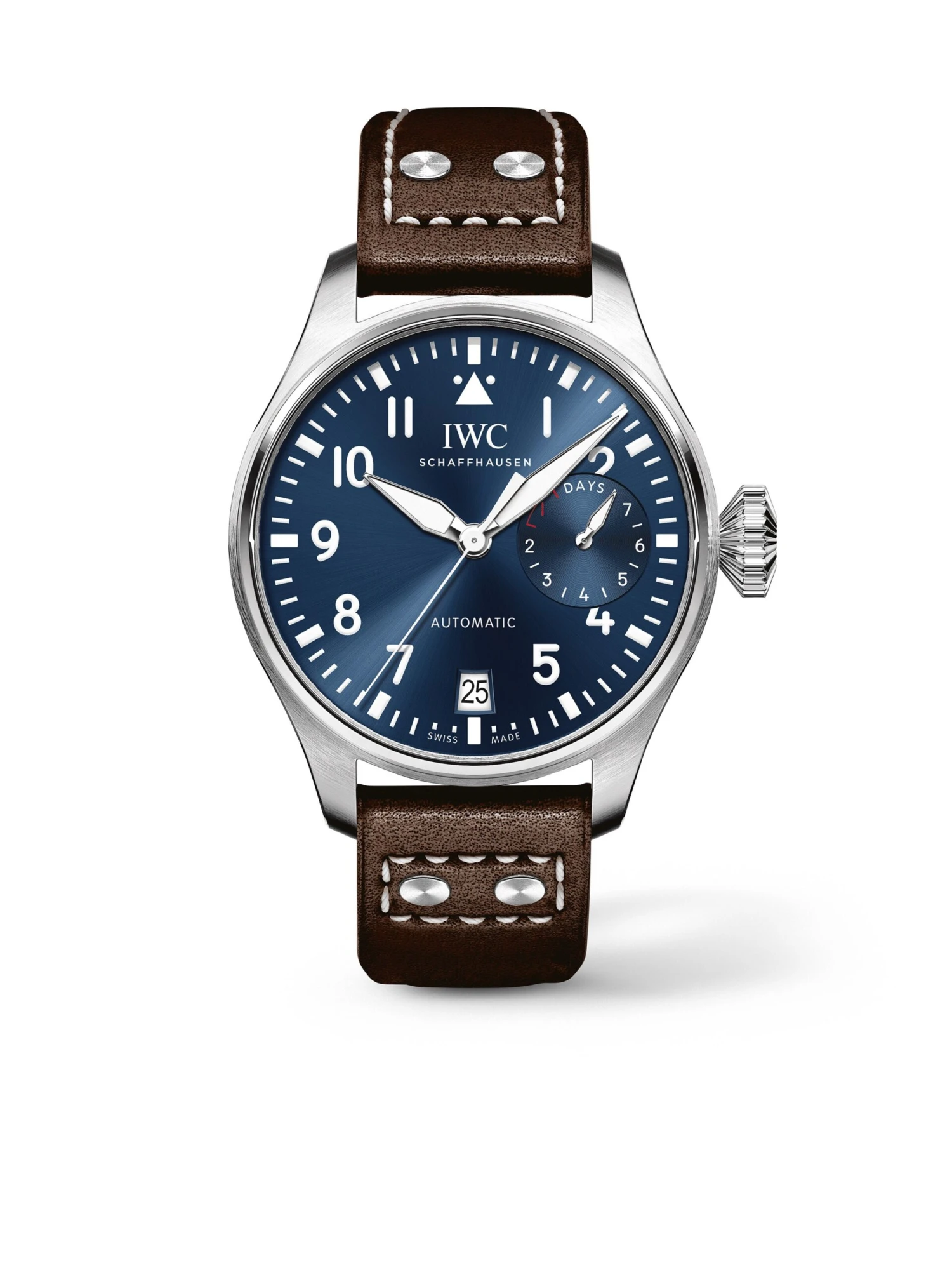Pilot’s watches from IWC have been conquering the airspace ever since 1948. The Big Pilot’s Watch Ref. IW501002, which, with features a diameter measuring 46.2 millimeters, takes its name literally. Being one of the rules of the genre, its blue dial with luminous coating is entirely dedicated to readability. It has a power reserve indicator showing the current status of the legendary caliber 52110. The movement is equipped with the efficient Pellaton self-winding mechanism with ceramic components. Two barrels provide a power reserve of seven days. The 15.6 millimeter high stainless steel case houses a soft-iron inner cage that serves as protection against magnetic fields.