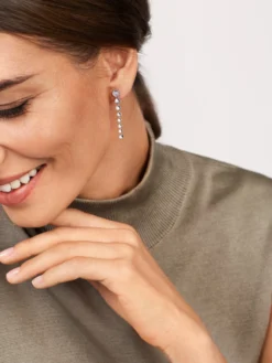 Ear studs or pendant earrings – these pieces of jewelry from the Blu BY KIM line are an all-round talent. The idea behind them: As classic brilliant-cut diamond studs, they can be individually complemented with a pendant of seven orb-shaped Blu elements. A new look in next to no time: These 18k white gold ear studs are ideal for those who want a different look every day.