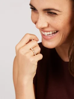 Precious everyday companion: The Blu BY KIM ring has a sparkling secret. Diamonds are integrated in some of its orb-shaped Blu elements. Reminiscent of flower blossoms, seven brilliant-cut gemstones in a bezel setting nestle elegantly next to each other enhancing the 18k rose gold ring with 0.68 ct in total. Strong presence, but not ostentatious: the fine orb shape makes this jewel an all-round talent.