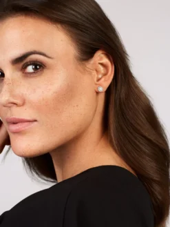 The Crown BY KIM ear studs captivate with their aristocratic look. The setting: A ring of brilliant-cut diamonds weighing 0.16 ct. in total, with a 0.33 ct. brilliant-cut diamond enthroned on top. The harmonious arrangement of the gemstones makes the 18 k white gold ear studs something truly special. The best way to combine? With a smart jacket or feminine top.