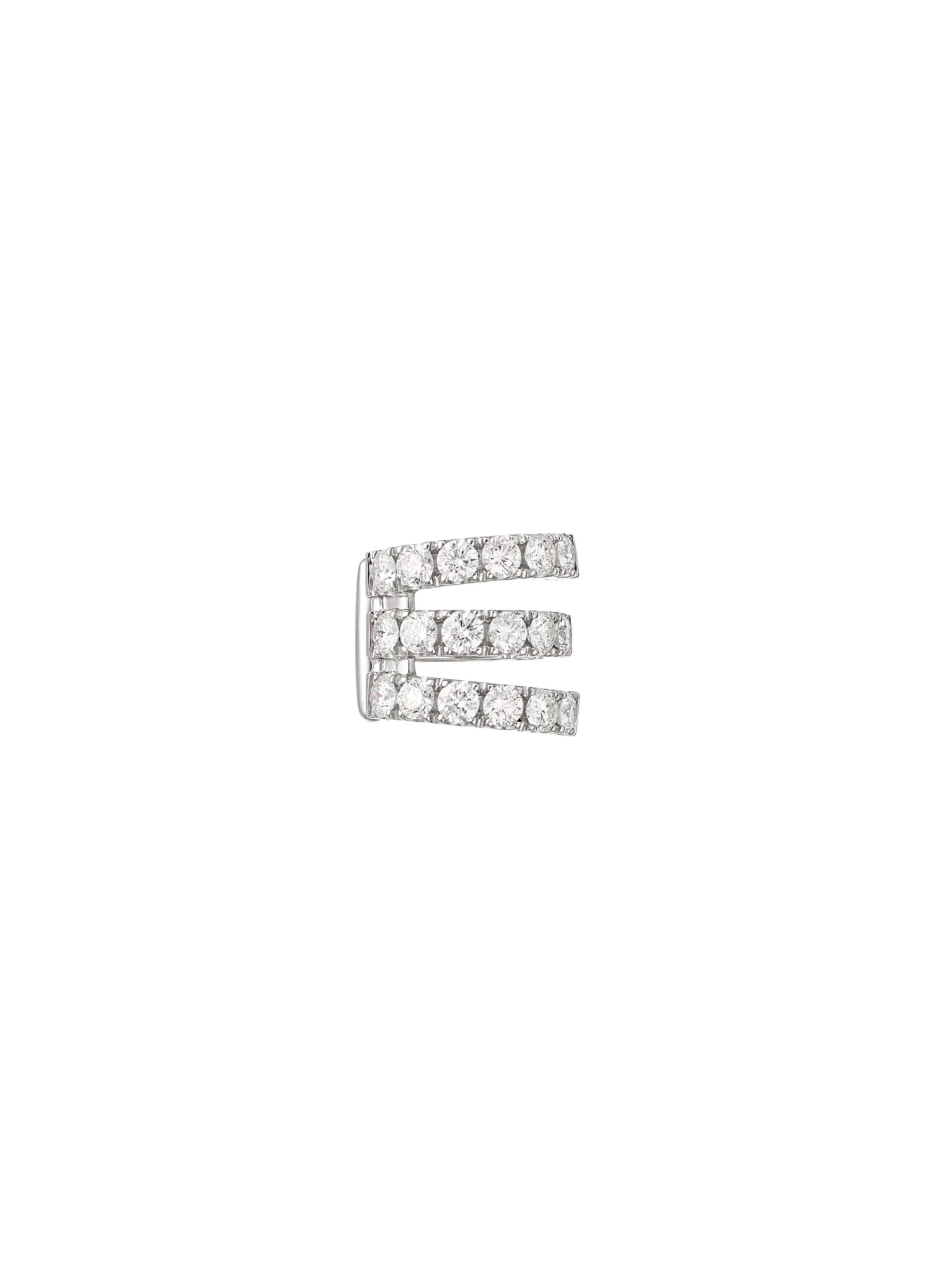 As a trend and fashion-aware woman, you have long known that the earcuff is a wonderful opportunity for giving ones own look a modern upgrade. A hinge makes the Electrify by Wempe Casuals earcuff in 18k white gold easy to fit in place. Its minimalistic design of three graphic lines is finished with 18 brilliant-cut diamonds with a total carat of 1.00 ct which ensure the sparkling accents. A jewelry piece, the solo, a highlight, but also in combination with other earrings, a reliable team player and a welcome guest to each ear party.Â