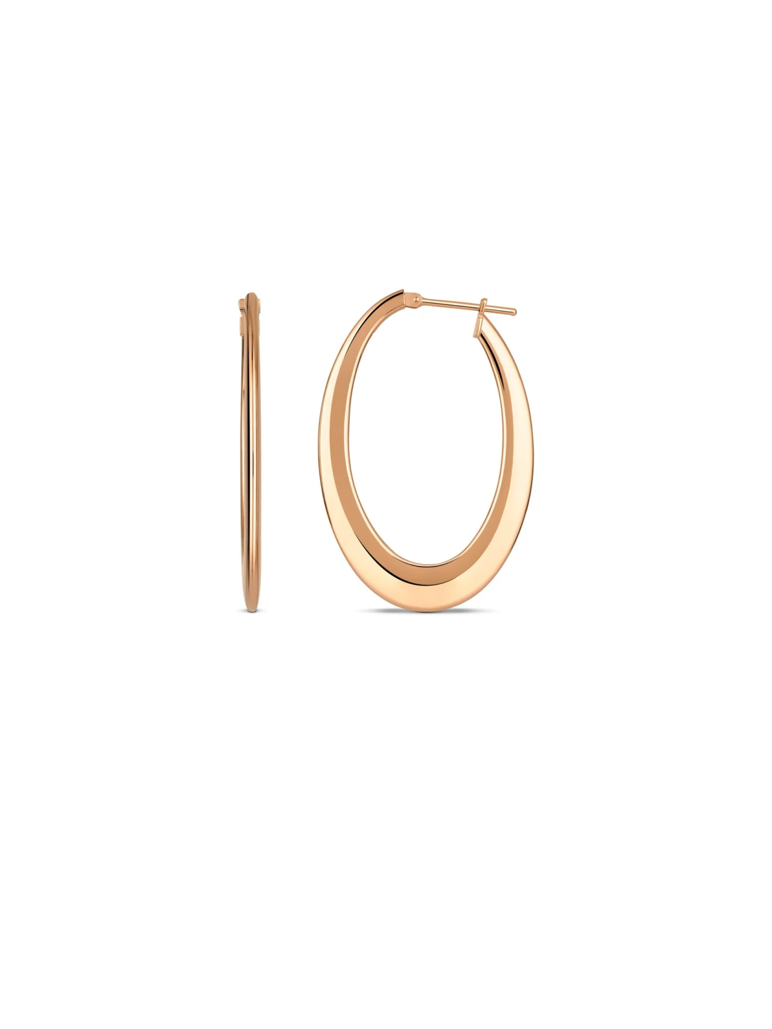 Fresh and cheerful: What makes the Electrify by Wempe Casuals hoop earrings in 18k rose gold so attractive is their dynamic shape that tapers towards the top. These uncomplicated earrings add a playful touch to minimalistic outfits. Their warm gold hue and smooth surface please the complexion of the woman who wears them. Being a true all-rounder, they shouldn’t be missing in any jewelry box.