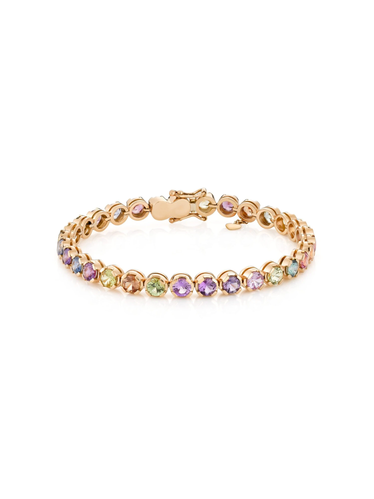 It is the smooth style and pastel-colored shimmer that makes this Riviere tennis bracelet in 18k rose gold a true affair of the heart. The Everloving Renaissance Multicolor by Wempe Classics bracelet is adorned with 31 faceted sapphires totaling 14.79 ct, which line up to form a sparkling string. The smoothly mounted elements ensure unparalleled wearing comfort. This timeless composition is complemented by a sweet detail: a small heart-shaped pendant transforms the bracelet into a declaration of love.