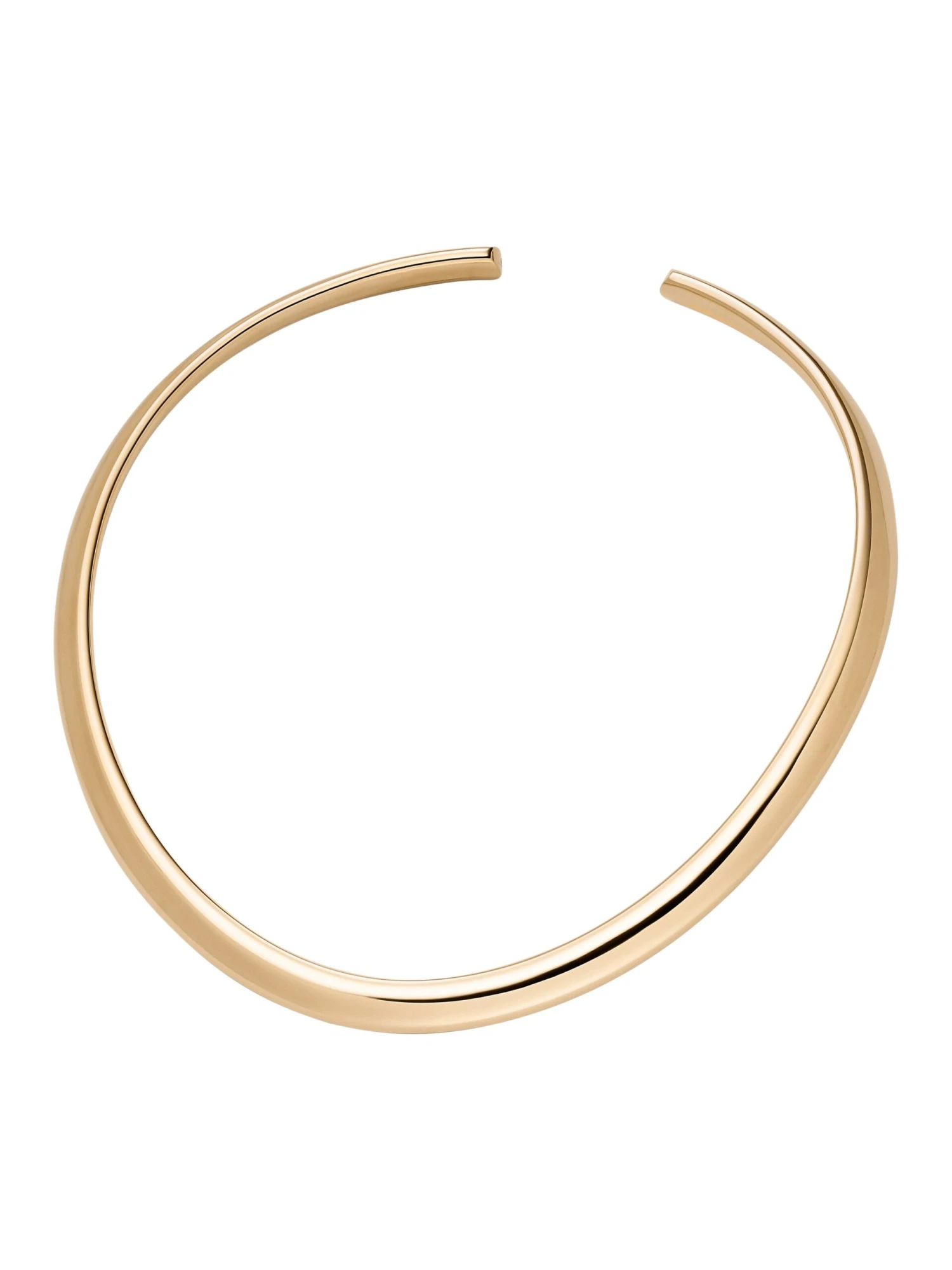 A minimalist design with a maximum effect. The huge forces and temperatures that this Flix.Flex hoop necklace in pure 18k rose gold is exposed to during its creation are virtually unimaginable. It glows for a long time at temperatures of up to 1000 degrees Celsius – to loosen it and to acquire its later flexibility. The 7 mm wide, oval and hand-polished, gold surface shines with the wearer’s smile.