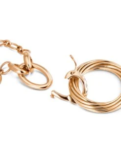 A ring without a beginning and an end symbolizes eternity – this is characteristic of our Helioro BY KIM line. This pendant with seamlessly intertwined 18k rose gold strands can be combined in a variety of ways: It is attached to a brilliant-cut diamond-studded clip eyelet that can be opened. This pendant can be worn just as your mood takes you – on a chain or a leather band.