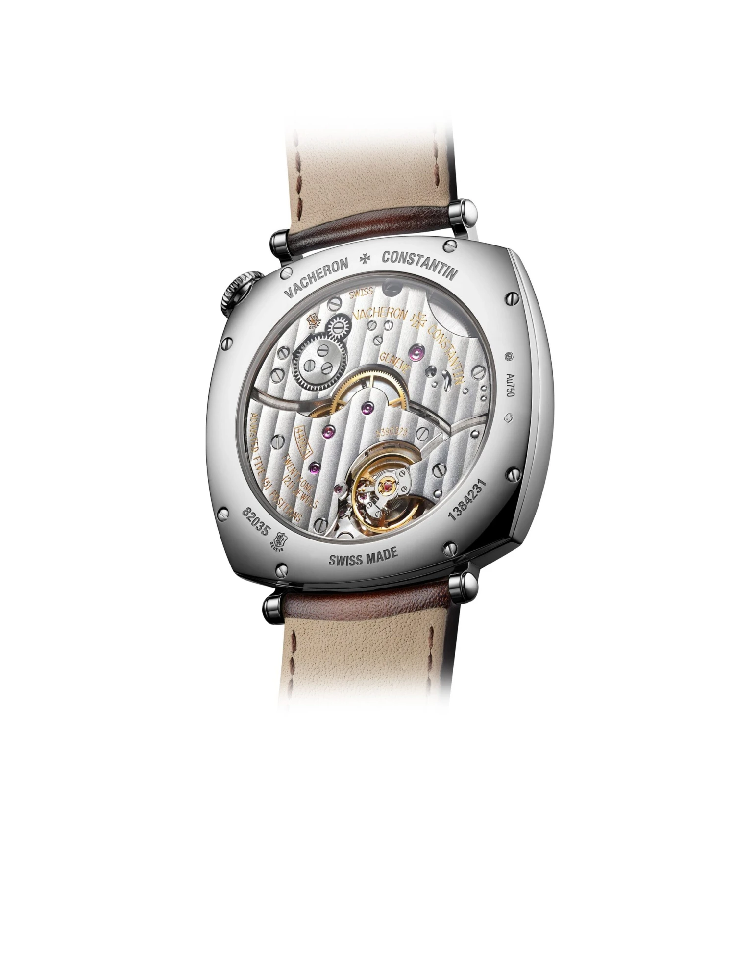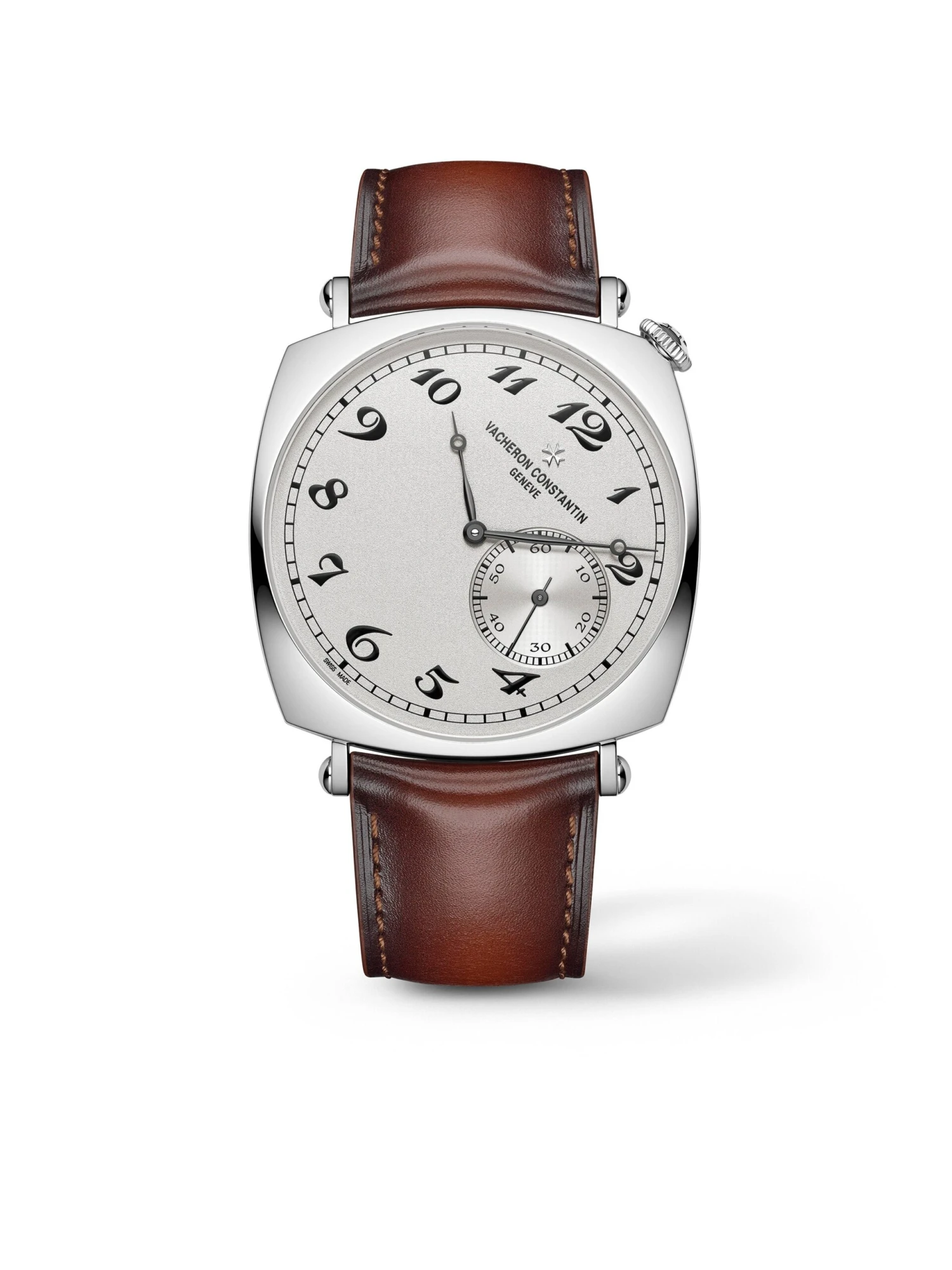 On the occassion of the 100th anniversary of the Historiques American 1921, Vacheron Constantin presents the icon from the Golden Twenties in a modern look. The characteristic design elements have been maintained: the avant-garde cushion shape, the diagonal time display, and the crown between 1 and 2 o’clock. Inside the 40-millimeter case made of 18k white gold, there is hand-wound manufacture caliber 4400 AS, positioned at an off-axis angle and equipped with an impressive barrel that ensures a power-reserve of 65 hours.
