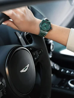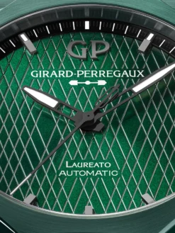 An icon in an all-green look, limited to only 188 watches. The Laureato 38 mm Green Ceramic Aston Martin Edition (Ref. 81005-32-3080-1CX) is an elegant reinterpretation of the popular line, surprising with a sporty touch and design influences from Aston Martin. In addition, the 38-millimeter model made of green ceramic presents the classic features of the original: an octagonal bezel with polished and satin-finished surfaces, an integrated bracelet, and a finely decorated dial – here in noble green with a cross-hatching. Inside the case, there is caliber GP03300-2166, a first-rate self-winding manufacture movement that shows off its precise work through a transparent caseback. Whether in everyday life or on special occasions: A power reserve of 46 hours, a date display at three o’clock, and a water resistance of up to 100 meters make this exclusive special model the ideal companion.