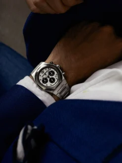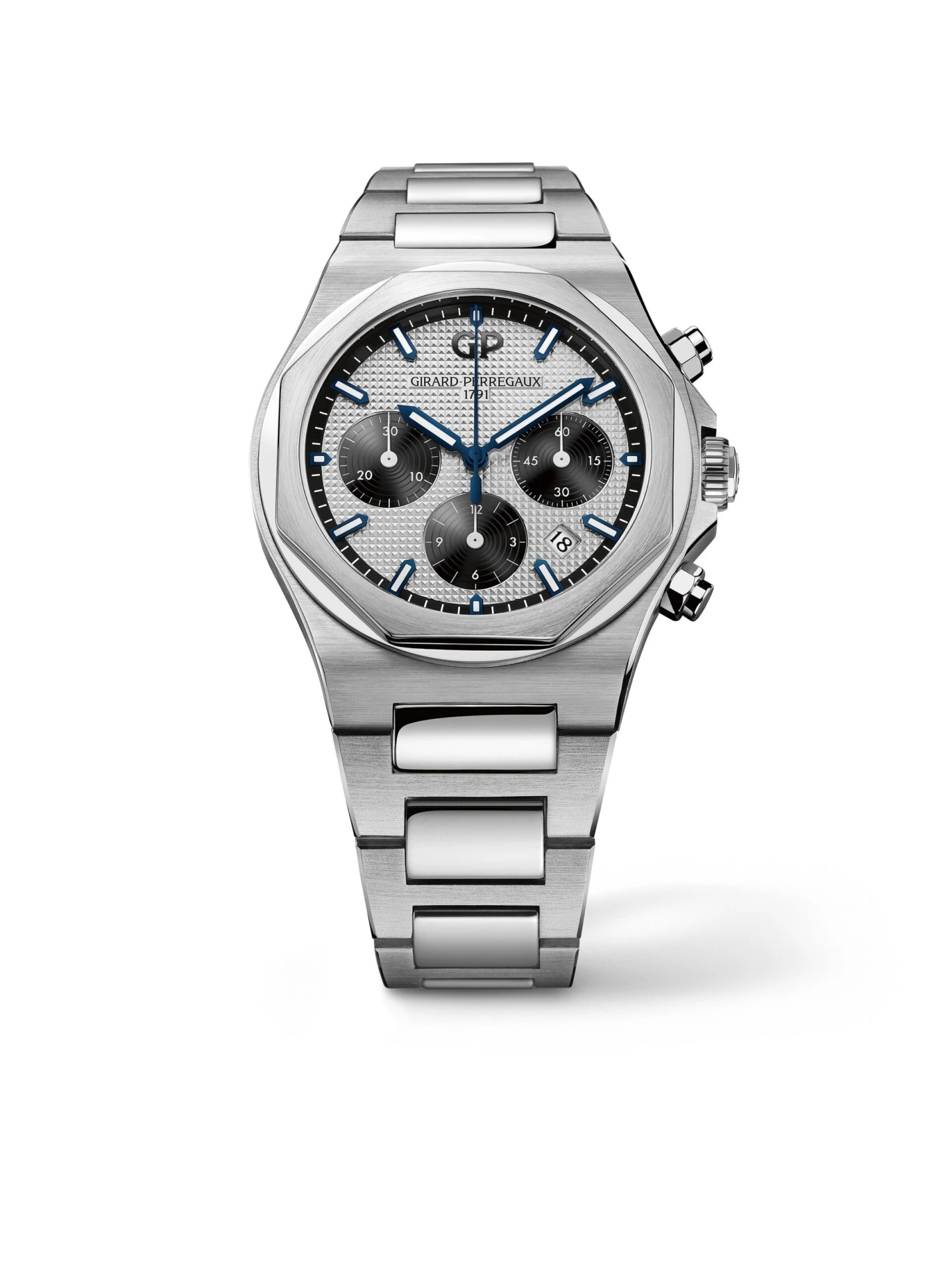 The Laureato Chronograph Ref. 81020-11-131-11A is the technological flagship of the sports watch line, which is characterized by style-defining elegance. It is powered by the automatic manufacture caliber GP03300-0137, whose mechanical microcosm combines a total of 419 components. The elaborately crafted chronograph movement displays its embellishments such as Geneva stripes and beveled edges under the sapphire crystal case back of the 42 millimeter 904L stainless steel case. The silver dial also captivates with its enchanting details, such as the Clous de Paris-style guilloche.