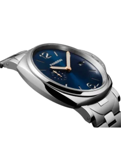 A deep blue dial with a complex sandwich construction, a bracelet with elegantly curved links that bring to perfection the interplay of polished and brushed surfaces, and a self-winding manufacture movement with a power reserve of 72 hours of tried-and-tested Panerai quality. In addition, the iconic sturdy design vocabulary that fluently blends into the proverbial Italian elegance. That’s the 42-millimeter version of the Panerai Luminor Due.