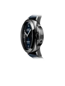 The rebirth of a legend. The Luminor Marina – 44 mm, reference PAM01313, is the faithful continuation of the watch icon of the 1950s. The cushion-shaped case is made of Panerai’s typical AISI 316 steel with a 44-millimeter diameter and is bound to impress with its 30-bar water resistance. The mechanical timekeeper within the watch is a P.9010 manufacture caliber. Thanks to its two barrels, this automatic manufacture movement can build up a power reserve to last three days. The classic sandwich dial shines with sunray decoration in dark blue, a tone which continues on into the alligator-leather strap. An artful combination of innovation and tradition with a unique aesthetic.