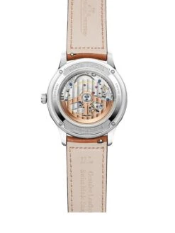 Everything at a glance: The Jaeger-LeCoultre Master Control Calendar combines the day, date, month and moon phase calendar functions clearly structured on its silver-plated dial. The stainless steel case measures 40 millimeters with a height of 10.95 millimeters and houses an improved caliber 866 with a power reserve of 70 hours. The hour and minute hands feature the typical dauphine shape and the markers take up their elongated form. A particular eye-catcher is the date hand, whose tip is decorated with a red arch. The small seconds hand is integrated into the moon phase display. The brown strap in Novonappa® calfskin adds a casual touch to this timeless collection.