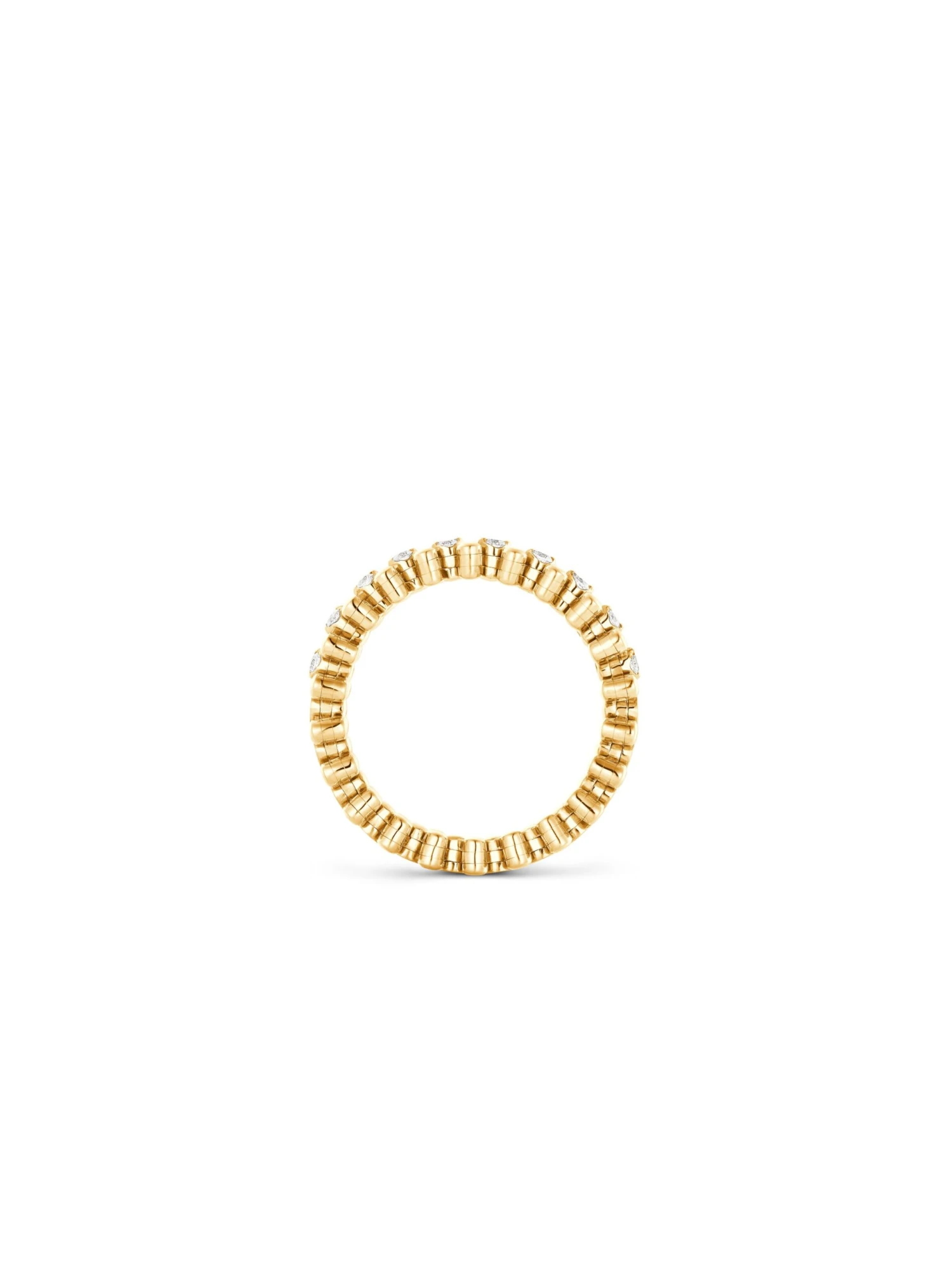 Whether on small fingers or thumbs, this ring makes every finger look good! Through the innovative ring band the Multisize Serafino Consoli for Wempe Classics ring can be pulled apart or pushed together to create a flexible ring size. 10 sparkling brilliant-cut diamonds in prong setting with a total 0.20 ct make the slim ring in 18k yellow gold a new favorite piece of jewelry that can be worn everywhere.