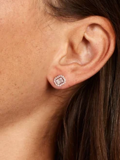 The perfect mix of classic and contemporary. The centerpiece of the One by Wempe Classics ear studs is the solitaire in a modern square shape. Both the diamonds of 0.40 ct each in the imposing emerald-cut are encircled by 32 brilliant-cut diamonds with a total carat weight of 0.28 ct. The wreath of brilliant-cut diamonds makes the solitaire sparkle even more brightly and appear larger. The filigree prong settings are made from 18k white gold. Elegant ear jewelry that matches any outfit and gives the wearer that special radiance.