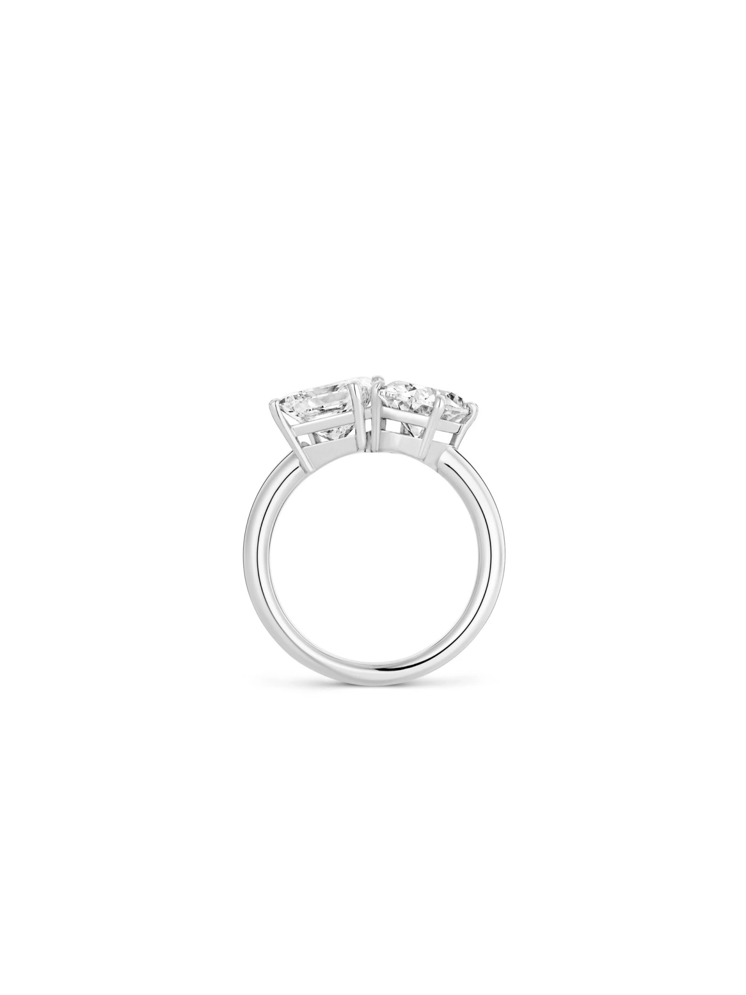 A dynamic duo. The One Match by Wempe Classics ring combines two popular cuts into one creation. An oval-cut diamond of 2.00 ct. and an angular princess-cut diamond also weighing 2.00 ct. create a fascinating interplay. Each stone is unique in and of itself, with their value confirmed by international certificates – and together they celebrate the warmth of the most beautiful gemstone. They are held on a ring band of radiant 18 k white gold in delicate prong settings.