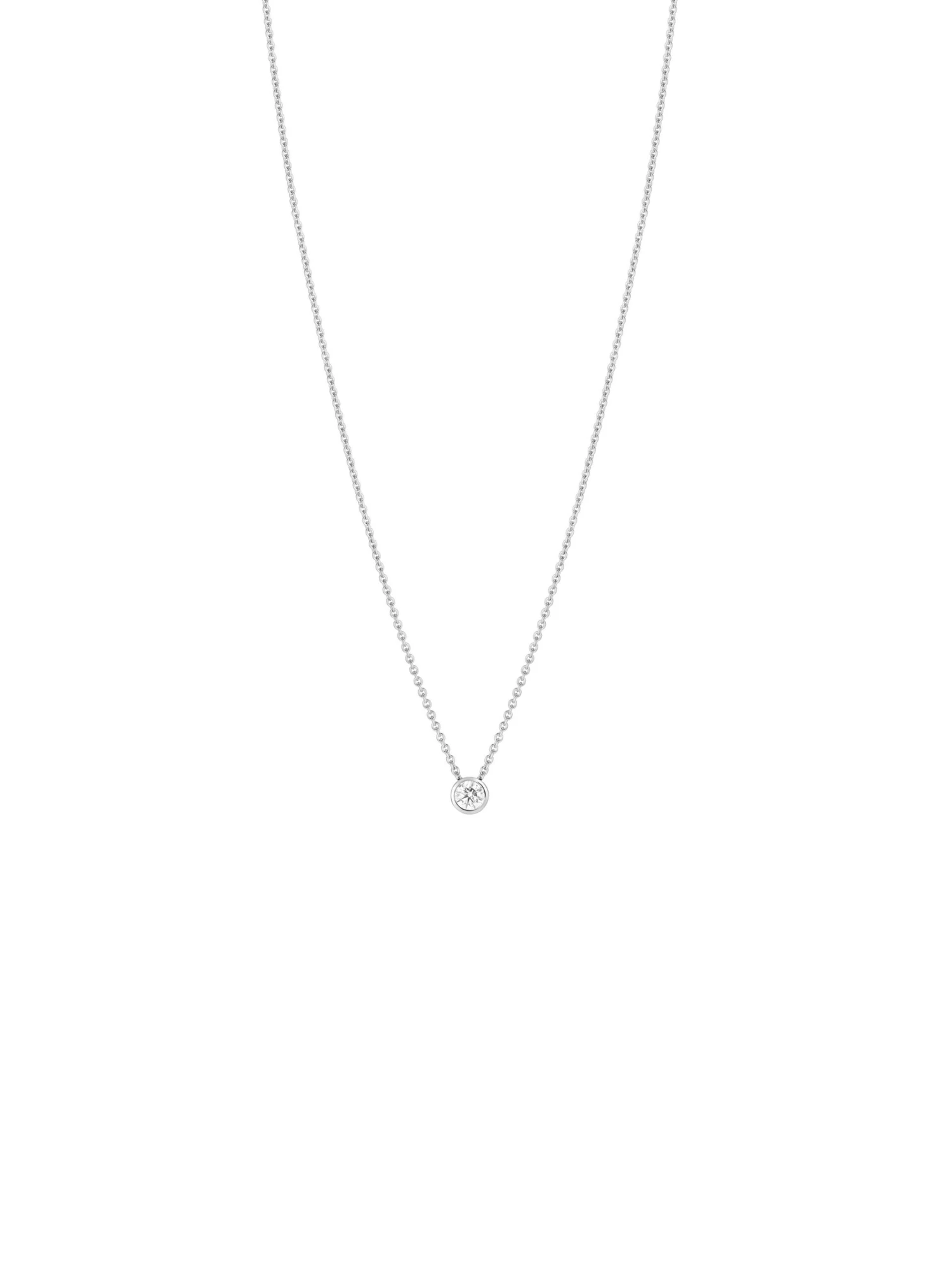 This classic solitaire pendant convinces with subtle elegance. The centerpiece is a 0.50 ct brilliant-cut diamond in a bezel setting. The solitaire adorns a 42-centimetre-long, faceted cable chain made of 18k white gold. The combination of discreet design and highest brilliance make this necklace a magically beautiful everyday companion that will also give pleasure for a long time to come as a gift.