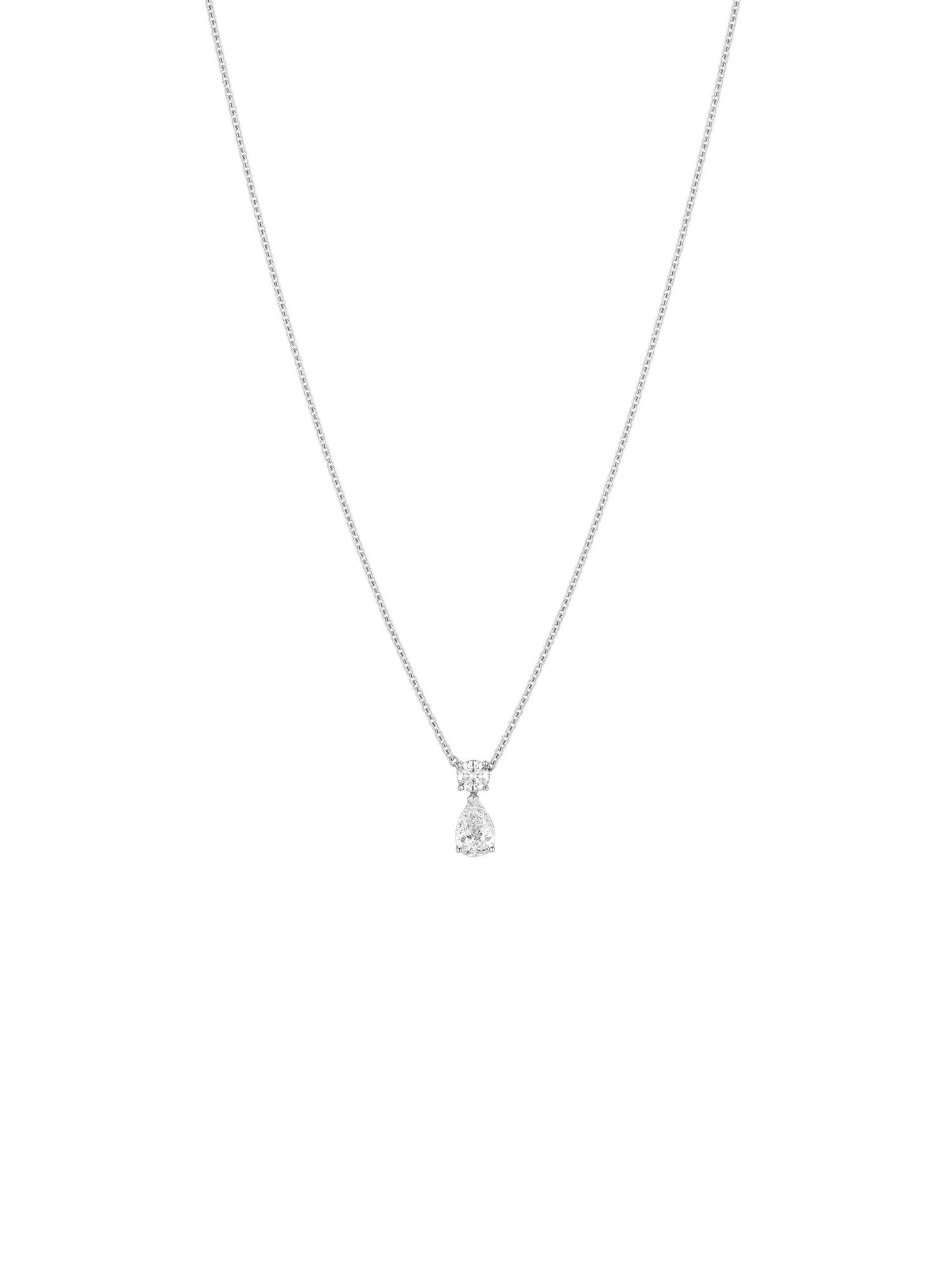 With its finesse and elegance, all eyes are drawn to the classic One by Wempe Classics pendant necklace. The center piece is a breathtaking 0.84 ct pear-shaped diamond held by a delicate brilliant-cut diamond: A composition that generates excitement and harmony at the same time and is thus a symbol of love. A delicate cable chain in cool 18k white gold completes the romantic jewelry item and adds a modern touch to the design.