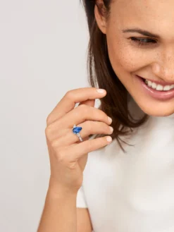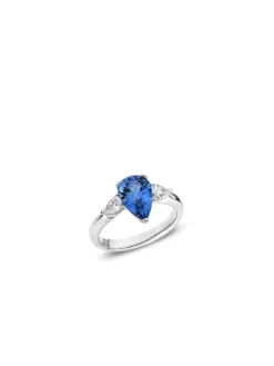 The intense blue color of tanzanites stands for a healthy and fulfilled life in the Massai culture. The One by Wempe Classics ring stages the symbolic tanzanite in a fascinating pear cut, embedded between two dazzling diamonds of 0.4 ct in total. Elegant 18k white gold rounds off the design and provides the ring with a discreet and modern appeal. This piece of jewelry doesnโt only have all eyes on it, the One by Wempe Classics ring is as well a loving message to the person that is especially dear to your heart.