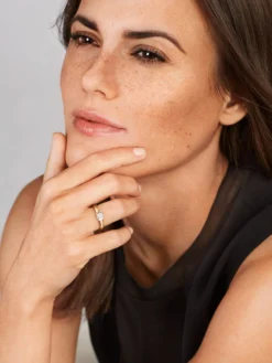 For the most exciting promise of them all. The Promise BY KIM ring is a true reflection of timeless beauty and will accompany you for a lifetime. The 45 ct brilliant-cut diamond is held in place by four filigree prongs, letting extra light shine into the solitaire and creating a bright sparkle. The delicate ring band made of radiant 18k white gold makes it easy to pair with your wedding ring or other favorite pieces.