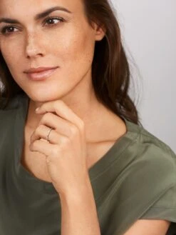 A classic for engagements: The Promise BY KIM ring is accentuated by a 0.10 ct. solitaire. The secret of its radiance is the refined prong setting that lends opulent light to the diamond from all sides. The highly polished 18 k white gold gives this piece of jewelry a modern and timeless character. A ring that you never want to put away again.
