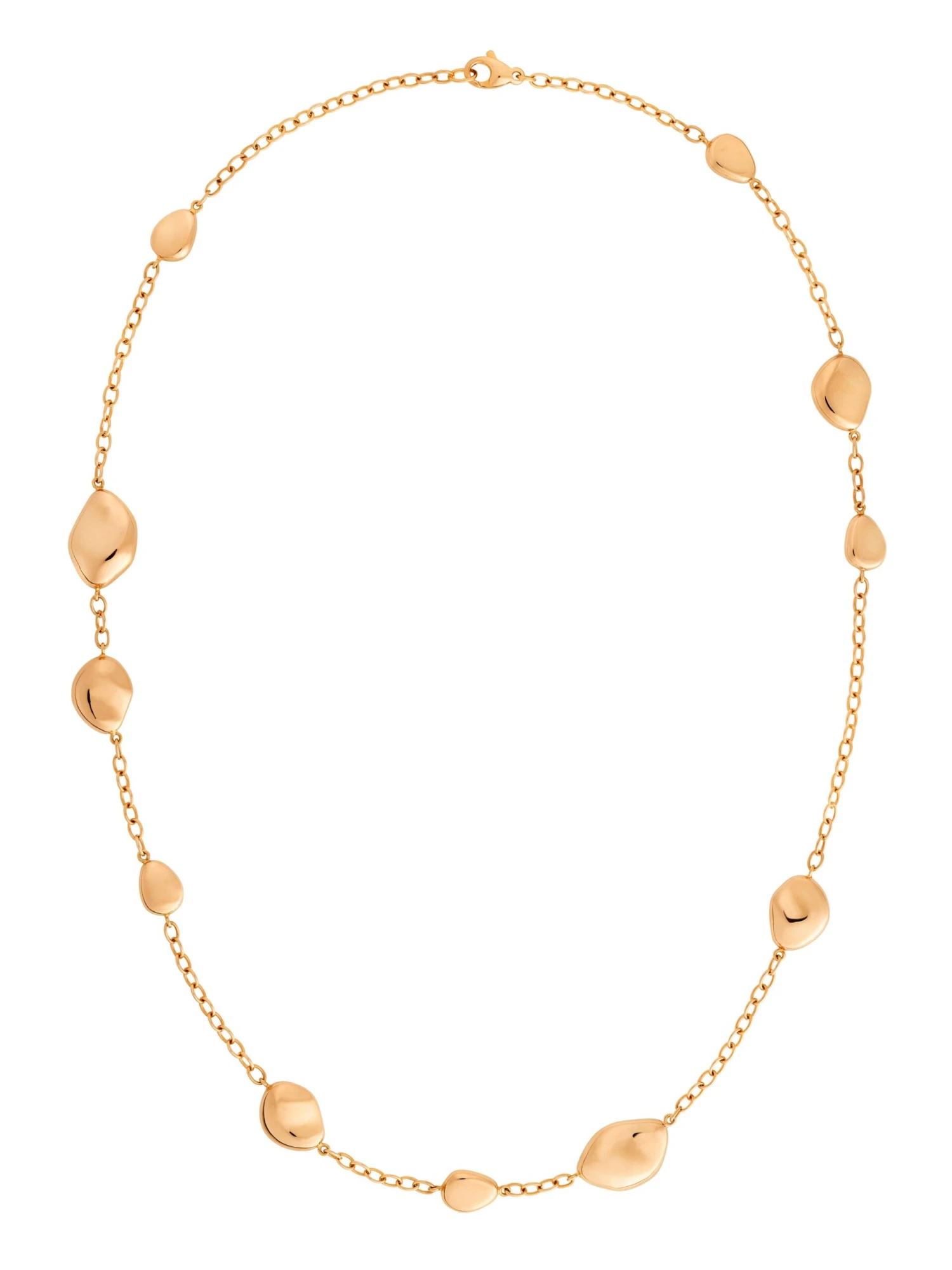 Choose extraordinary accessories. The Cosmos BY KIM necklace in 18k rose gold is simply breathtakingly beautiful. With their different sizes, the gold elements look as if they were sculpted by Mother Nature herself and are reminiscent of small gold nuggets. It is precisely the imperfection that achieves a particularly charming effect here. The 55 centimetre long cable chain is extremely variable and can also be worn as a three-row bracelet.