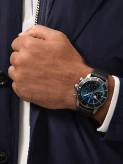 Robust, timeless and with the colors blue and black rather discreet, the Superocean Héritage II Chronograph is well equipped for active everyday life. The rubber strap underlines the casual style of this timepiece. The stainless steel case has a diameter of 44 millimeters and a height of 15.5 millimeters and houses a manufacture caliber.