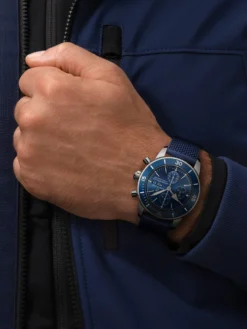 Robust, timeless and with the colors blue and silver discreetly understated, the Superocean Héritage II Chronograph equips you for active everyday life. The Milanaise highlights the casual style of this timepiece. The stainless steel case has a diameter of 44 millimeters and a height of 15.5 millimeters and houses a manufacture caliber.