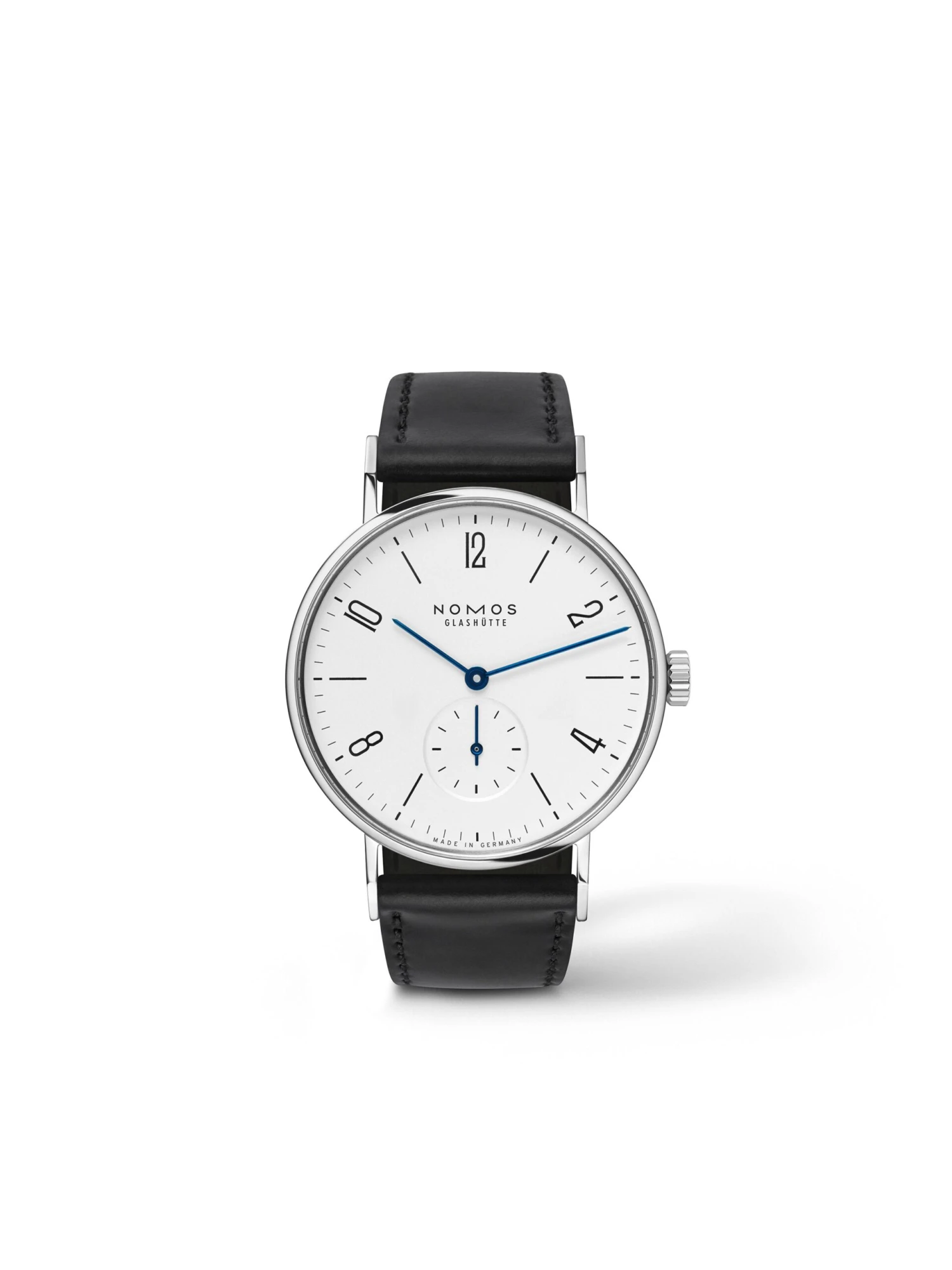 The Tangente, reference 101, is the classic from this Glashütte watchmaker. As a NOMOS watch from the very first hour, it stands for the quintessential features that watch aficionados adore: classic simplicity, clean lines, and first-rate watchmaking mechanics. Five digits with typography reminiscent of the Bauhaus era, small seconds at six o’clock, and cornflower-blue hands characterize its appearance. With a diameter of 35.0 millimeters and thickness of just 6.2 millimeters, it cuts an exceptional figure on the wrists of both men and women. The Alpha manufacture caliber also enjoys classic status. The hand-wound movement, meanwhile, runs for up to 43 hours when fully wound.