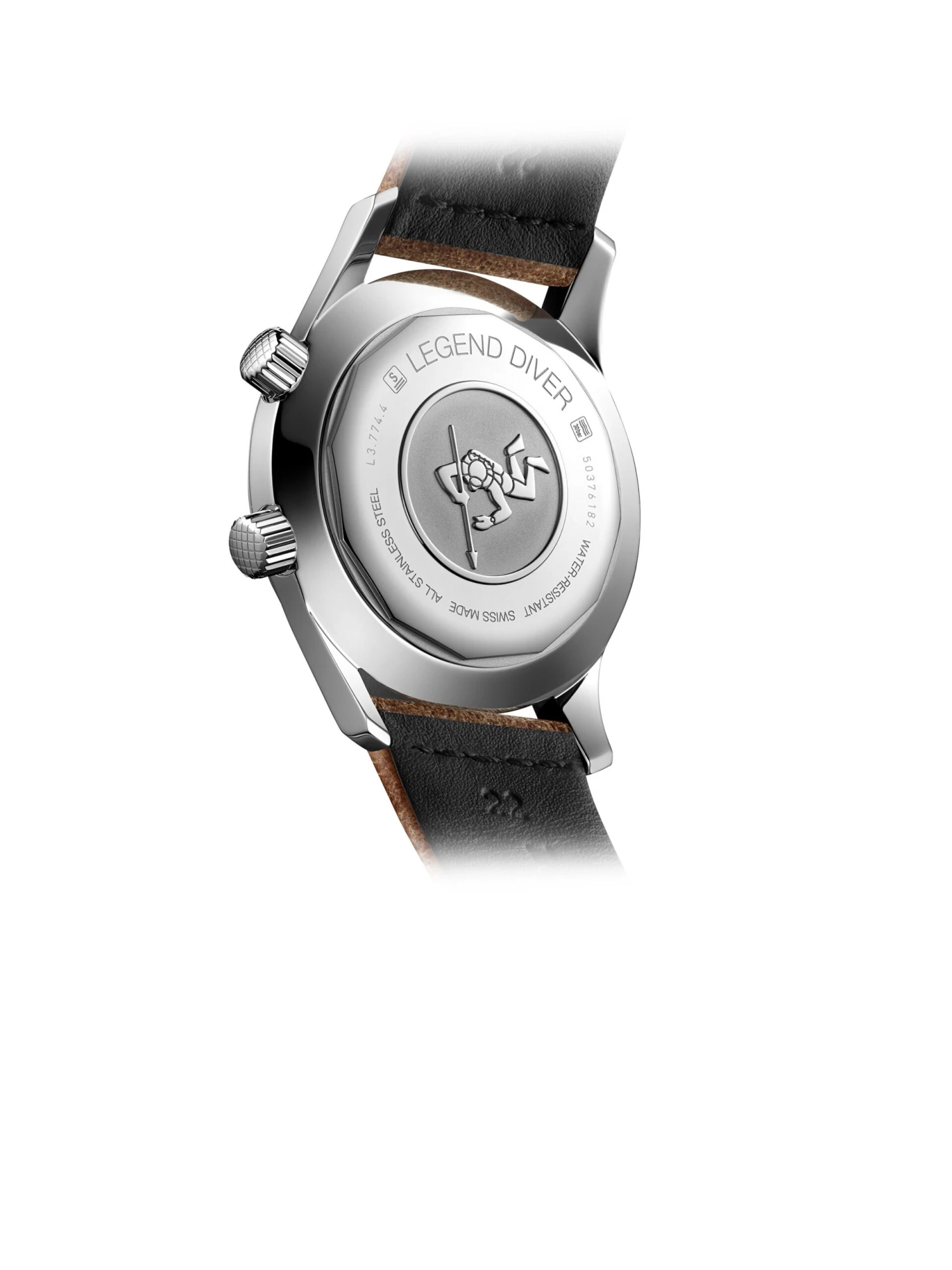 The Longines Legend Diver Watch is part of the Heritage collection. This diver’s watch impresses with a round stainless-steel case with a diameter of 42 millimeters. The model features a screw-down case back, a screw-in crown and an internal turning diving flange. Furthermore, it is water-resistant to a water pressure of 30 bar. The hands and hour markers, on a brown dial, are coated with luminous mass and are thus perfectly readable even in the dark. A date display complements the dial. Automatic caliber L888 ticks inside the case and ensures a power reserve of up to 72 hours. This timepiece pays tribute to the pioneering spirit of the Longines brand.