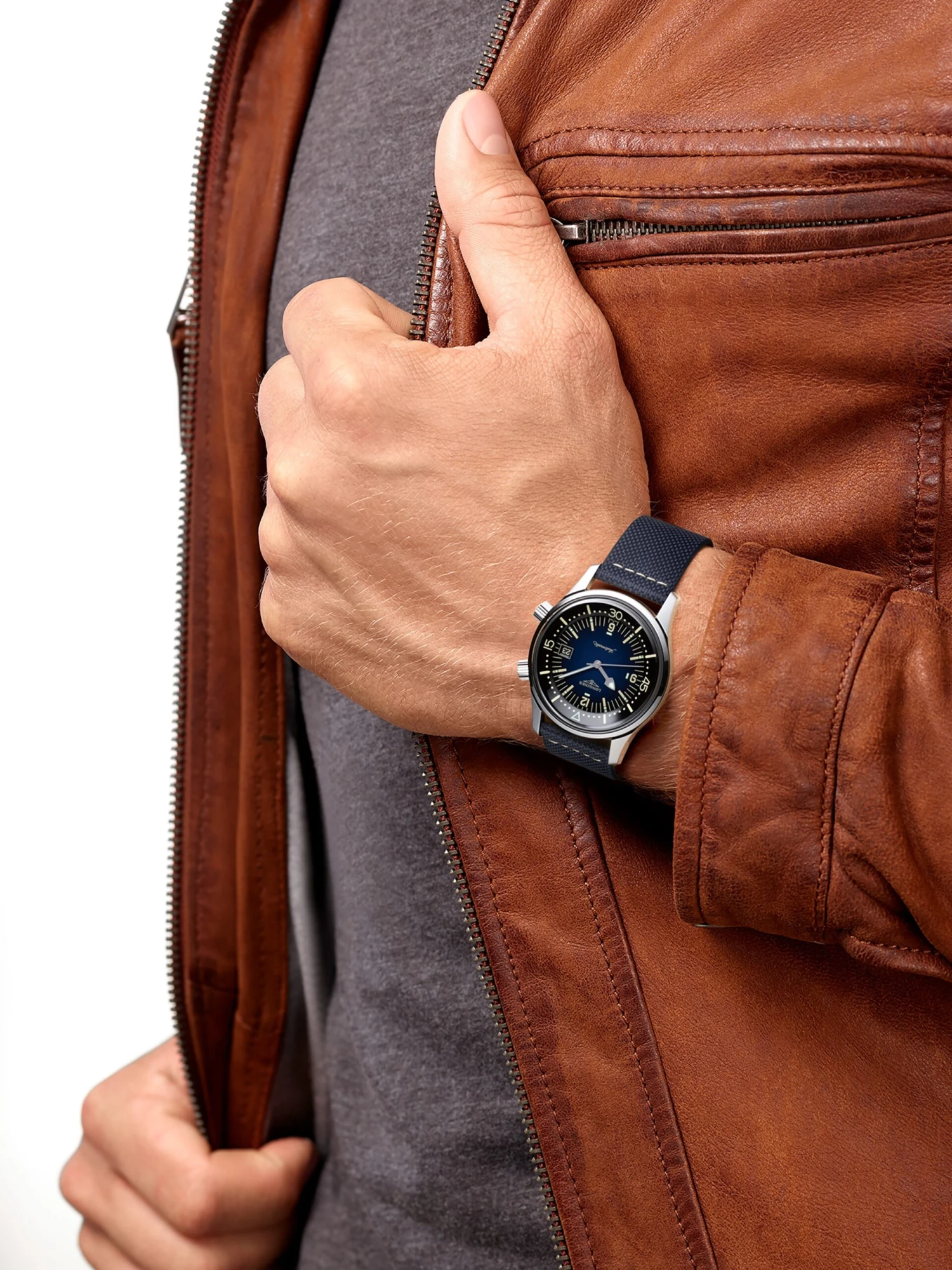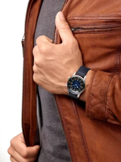 The Longines Legend Diver Watch is part of the Heritage collection. This diver’s watch impresses with a round stainless-steel case with a diameter of 42 millimeters. The model features a screw-down case back, a screw-in crown and an internal turning diving flange. Furthermore, it is water-resistant to a water pressure of 30 bar. The hands and hour markers, on a blue dial, are coated with luminous mass and are thus perfectly readable even in the dark. A date display complements the dial. Automatic caliber L888 ticks inside the case and ensures a power reserve of up to 72 hours. This timepiece pays tribute to the pioneering spirit of the Longines brand.