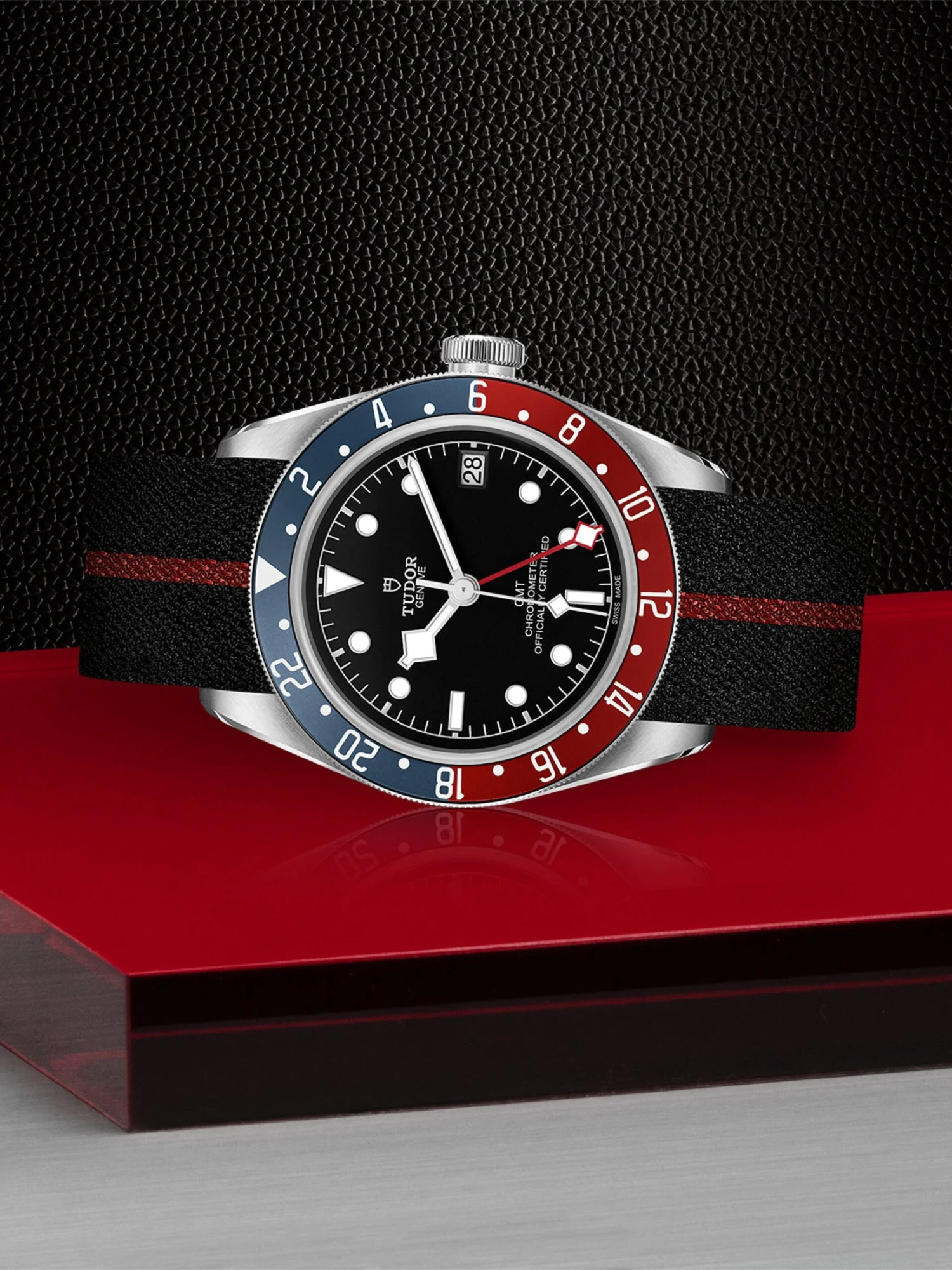 The Black Bay GMT is an extension of the Black Bay line with a highly functional complication: a multiple time-zone function – also known as a GMT function. Recognisable by its rotatable bezel, which derives its deep blue and burgundy colour theme from other models in the Black Bay line, but in a matt version, the Black Bay GMT is also a nod to the early days of this watchmaking function.