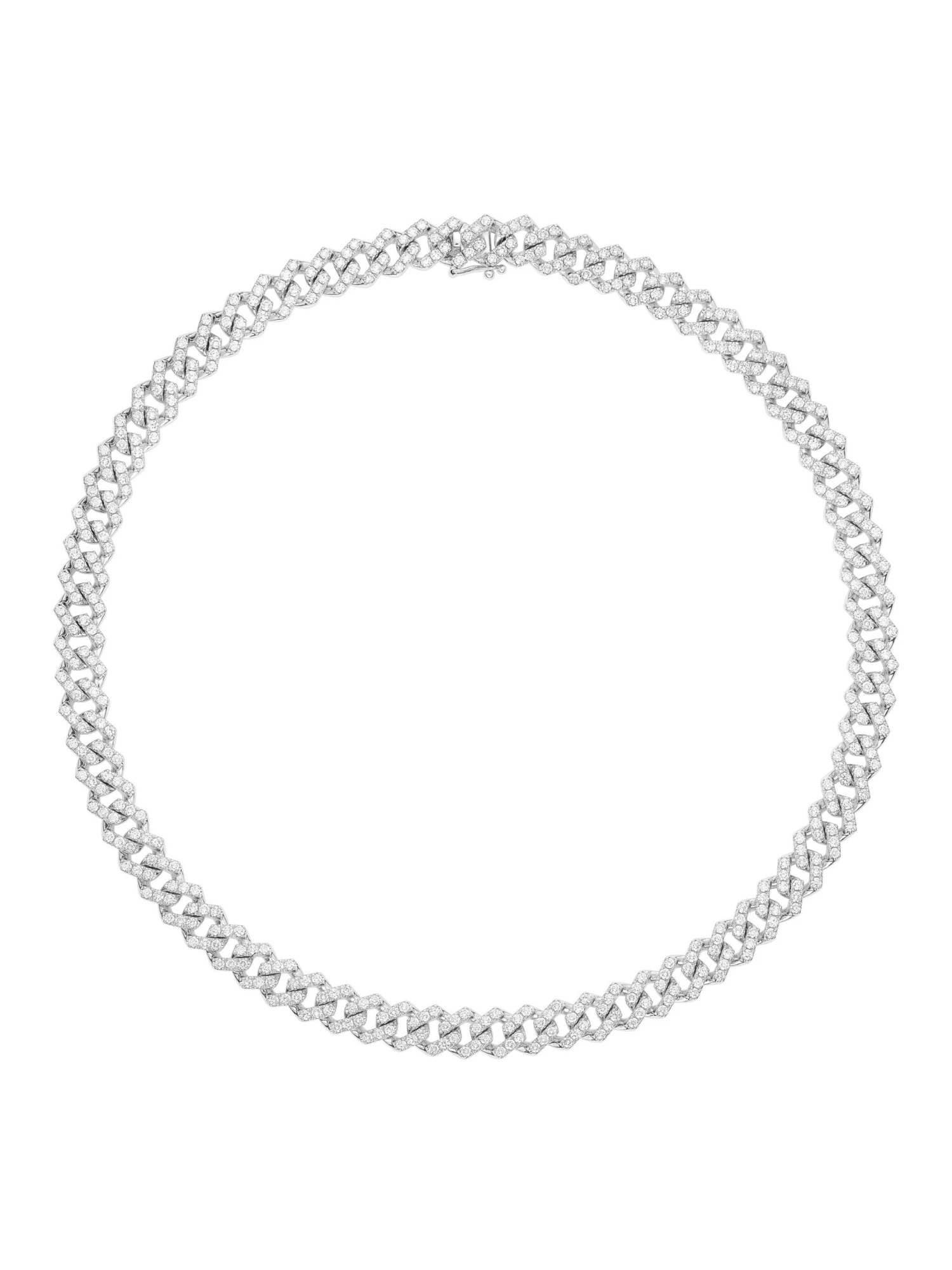 A modern, classy interpretation of the curb link necklace: The Uptown by Wempe Statements necklace plays with the contrast between a cool, rock n’ roll design vocabulary and classic, elegant brilliant-cut diamonds. Made of 18k white gold and set with 474 sparkling brilliant-cut diamonds, the item attracts attention and can be perfectly combined with a leather jacket and an elegant suit alike. With this necklace, you can emphasize your self-confidence and radiate feminine charm.