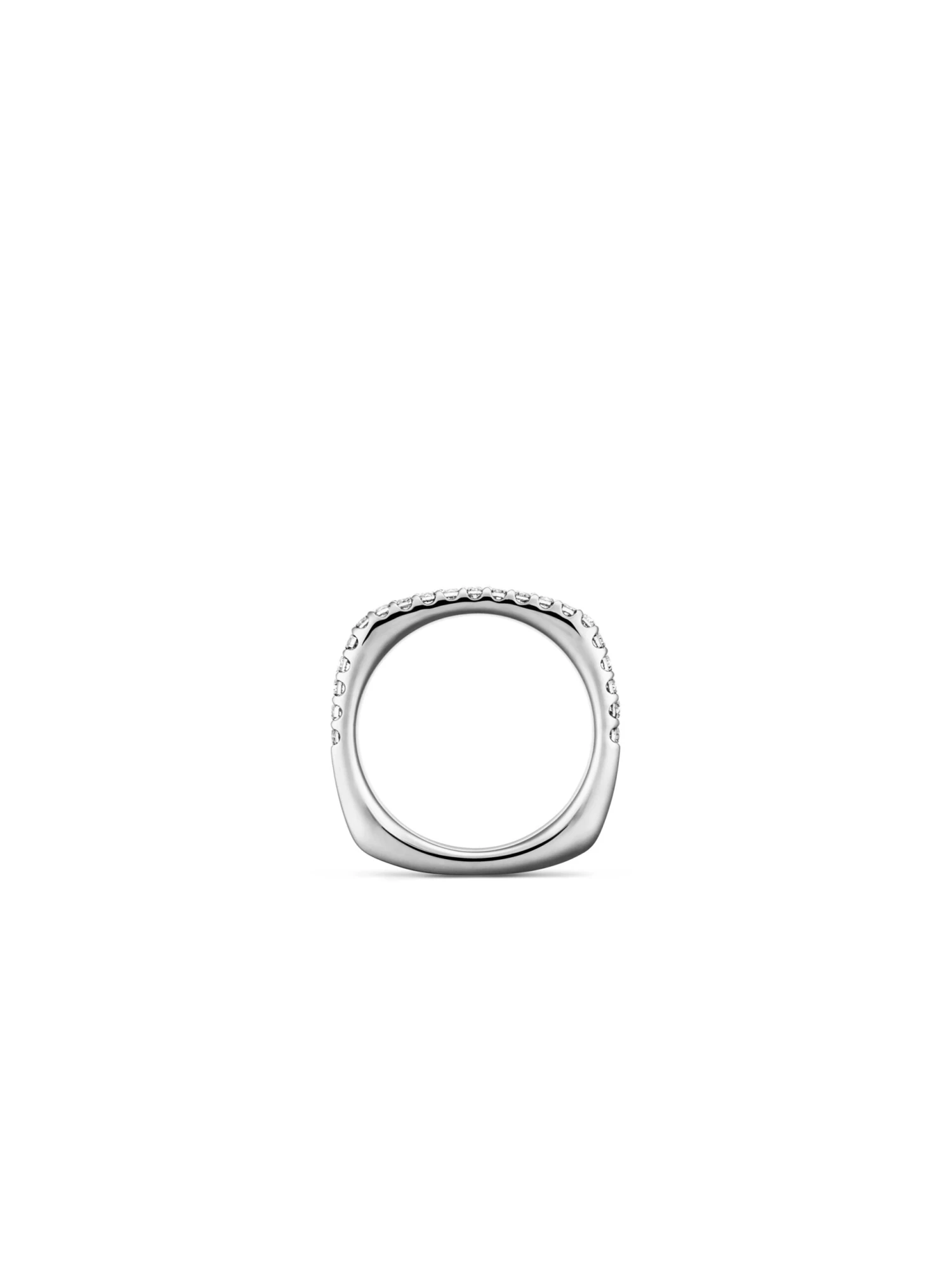 Almost a square on the outside and a circle on the inside: The Square BY KIM ring combines two geometric shapes in perfect harmony. The result is a creation, reduced to the essential, made of 18k white gold set with 21 brilliant-cut diamonds 0.42 ct in total. A ring to delight purists, discreetly rounded off on the inside for maximum wearing comfort.