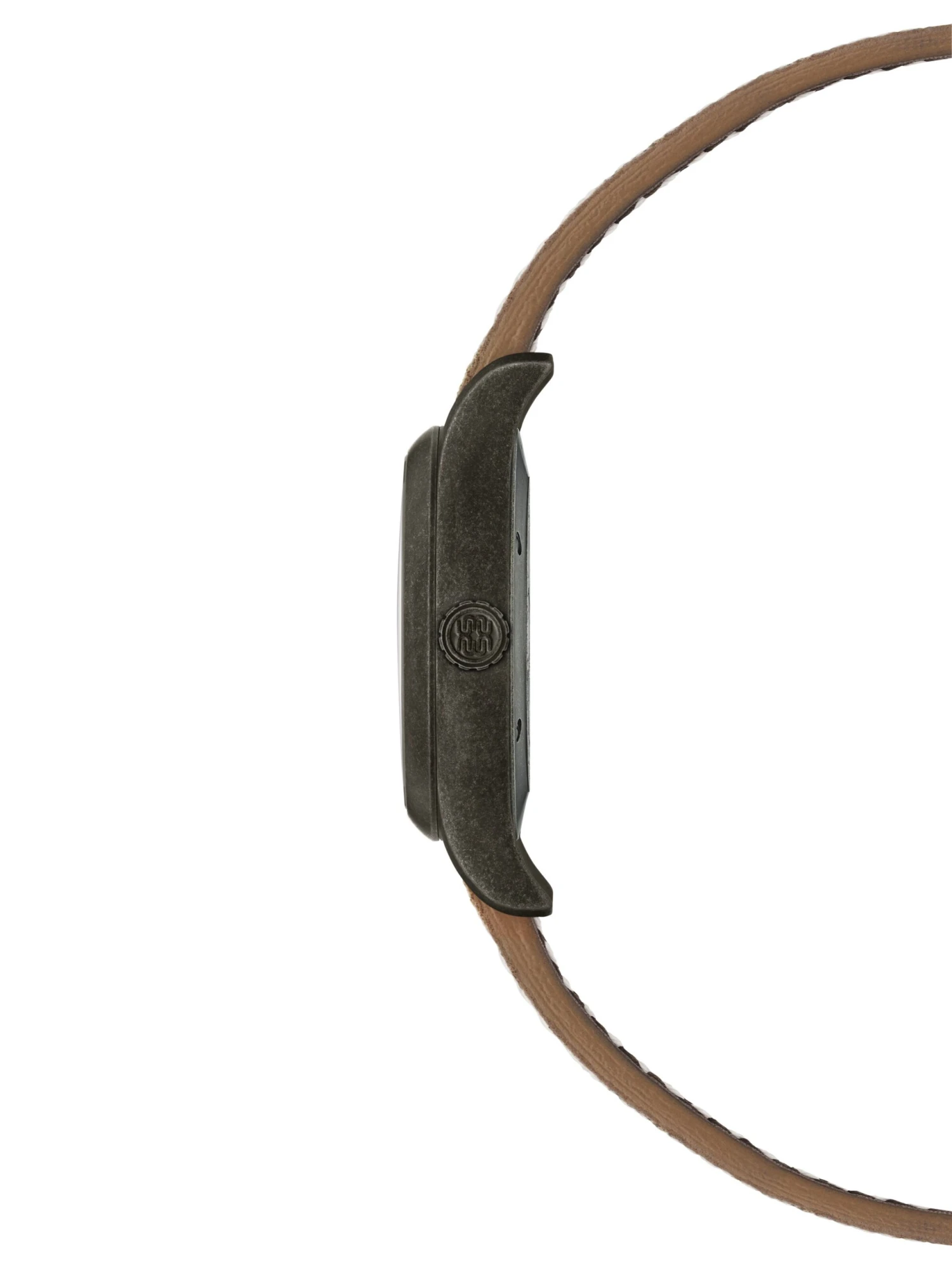 Designed with inspiration from classic aviator watch models and fitted with innovative, precise technology, our Zeitmeister Aviator Watch Large Date Antique is the ideal everyday companion. The 42-millimeter stainless-steel case with rugged, dark gray PVD coating is reminiscent of historical onboard instruments. The classic typography on the black dial with a second time zone display at 6 o’clock and a striking date display at 12 o’clock emphasizes the functional nature of this aviator watch. The numerals and hands are coated with Super-LumiNova®, ensuring good readability even in difficult lighting conditions. Inside the case, which is water-resistant to 5 bar, there is self-winding caliber TT651.00 (basis ETA 2892-A2). The chronometer-certified aviator watch comes with a sturdy, handmade brown canvas strap with stainless-steel pin clasp and suits thus any outfit, whether on business or out of hours. The Zeitmeister Aviator Watch Large Date Antique comes in an edition limited to 100 watches.